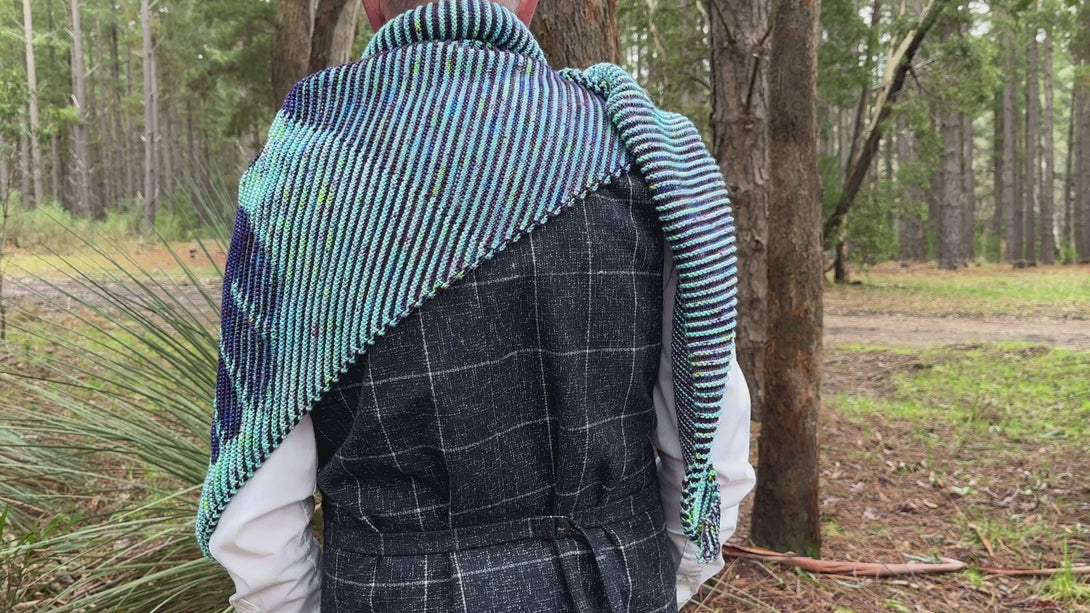 This is a shawl created with shadow knitting. The hug is very bold when it comes into view. An added bonus when you wear it, the patten is not always visible but the colours look like there moving as you do. We all love a hug, with this shawl you will be the envy of everyone.....