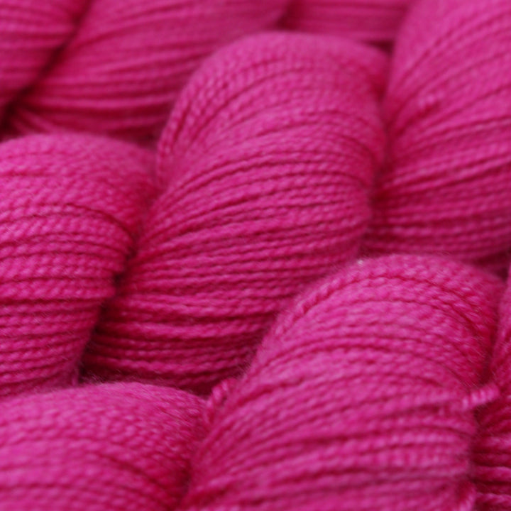 A gorgeous high twist silk merino blend with a pearly texture. The yarn is super soft and shiny. The fabric has a soft shine and a lovely drape. It is perfect for accessories and garments. The high twist construction means high stitch definition and shows off colour wonderfully. With a tight gauge and the strength of silk, this yarn could also be considered for socks.