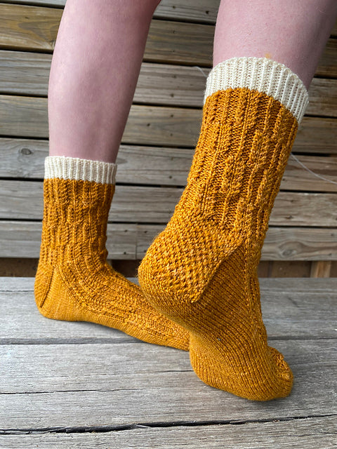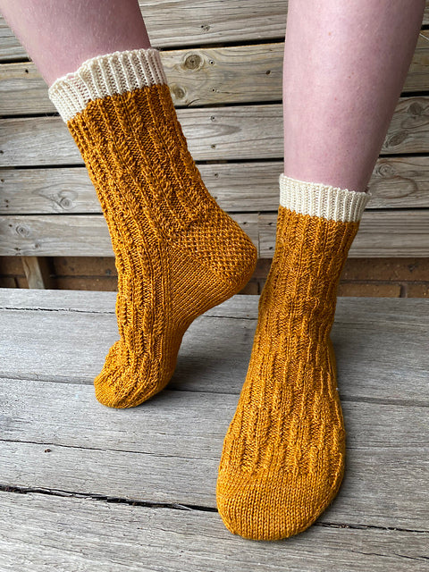 We recommend you use the "Wheat Feet" Sock Pattern by Sian available online at ravelry.com here ( https://www.ravelry.com/patterns/library/wheat-feet )