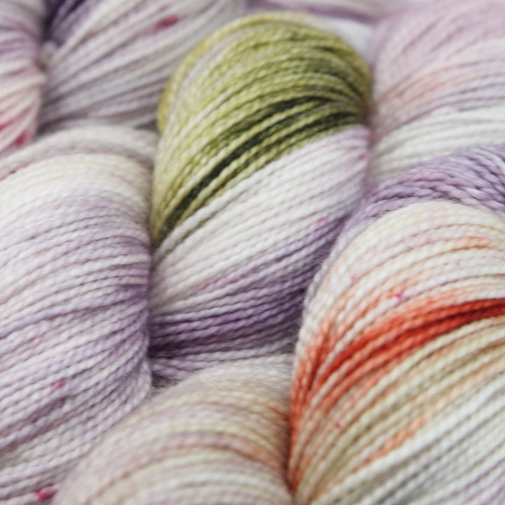 A gorgeous high twist silk merino blend with a pearly texture. The yarn is super soft and shiny. The fabric has a soft shine and a lovely drape. It is perfect for accessories and garments. The high twist construction means high stitch definition and shows off colour wonderfully. With a tight gauge and the strength of silk, this yarn could also be considered for socks.