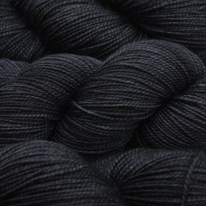 A gorgeous high twist silk merino blend with a pearly texture. The yarn is super soft and shiny. The fabric has a soft shine and a lovely drape. It is perfect for accessories and garments. The high twist construction means high stitch definition and shows off colour wonderfully. With a tight gauge and the strength of silk, this yarn could also be considered for socks.