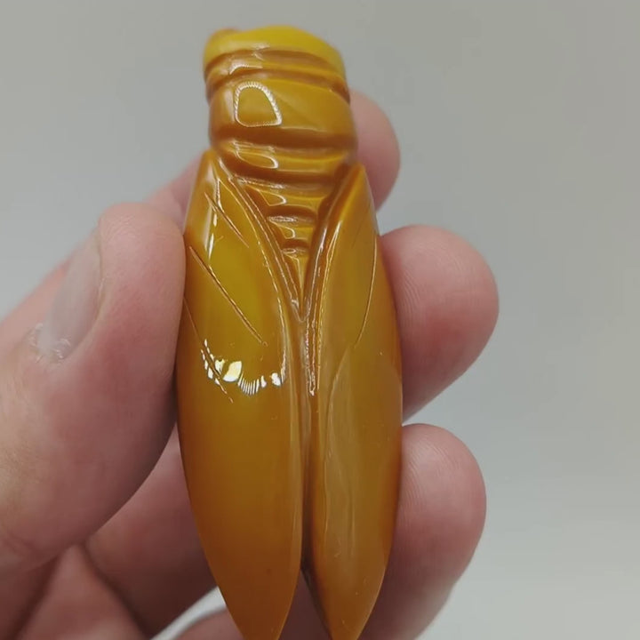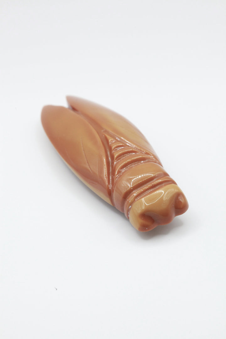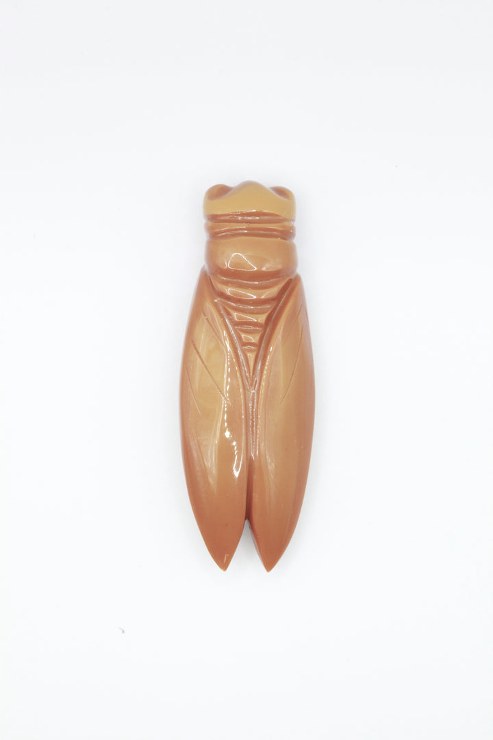 Cicadas have been featured in literature since the time of Homer's Iliad, and as motifs in art as early as the Chinese Shang dynasty. They have been referenced in myths and folklore to represent carefree living, immortality., as well as rejuvenation and re-invention. This brooch is exquisitely crafted with a sturdy hand-made brass clasp/fixture.