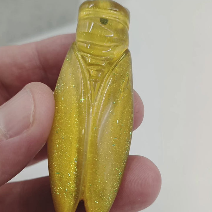 Cicadas have been featured in literature since the time of Homer's Iliad, and as motifs in art as early as the Chinese Shang dynasty. They have been referenced in myths and folklore to represent carefree living, immortality., as well as rejuvenation and re-invention. This brooch is exquisitely crafted with a sturdy hand-made brass clasp/fixture.