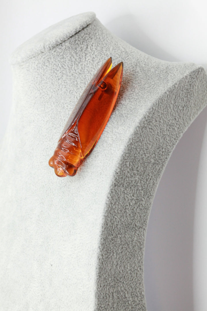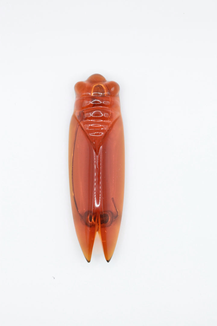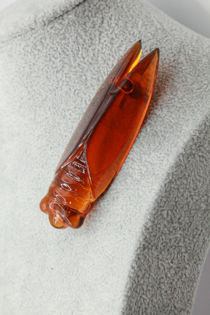 Cicadas have been featured in literature since the time of Homer's Iliad, and as motifs in art as early as the Chinese Shang dynasty. They have been referenced in myths and folklore to represent carefree living, immortality., as well as rejuvenation and re-invention. This brooch is exquisitely crafted with a sturdy hand-made brass clasp/fixture.