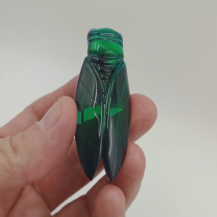 Cicadas have been featured in literature since the time of Homer's Iliad, and as motifs in art as early as the Chinese Shang dynasty. They have been referenced in myths and folklore to represent carefree living, immortality., as well as rejuvenation and re-invention. This brooch is exquisitely crafted with a sturdy hand-made brass clasp/fixture.