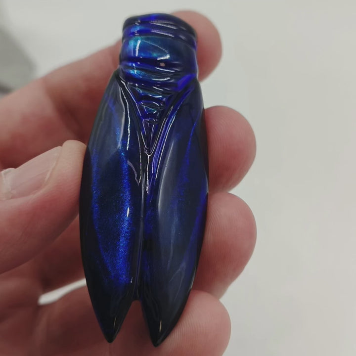 Cicadas have been featured in literature since the time of Homer's Iliad, and as motifs in art as early as the Chinese Shang dynasty. They have been referenced in myths and folklore to represent carefree living, immortality., as well as rejuvenation and re-invention. This brooch is exquisitely crafted with a sturdy hand-made brass clasp/fixture.
