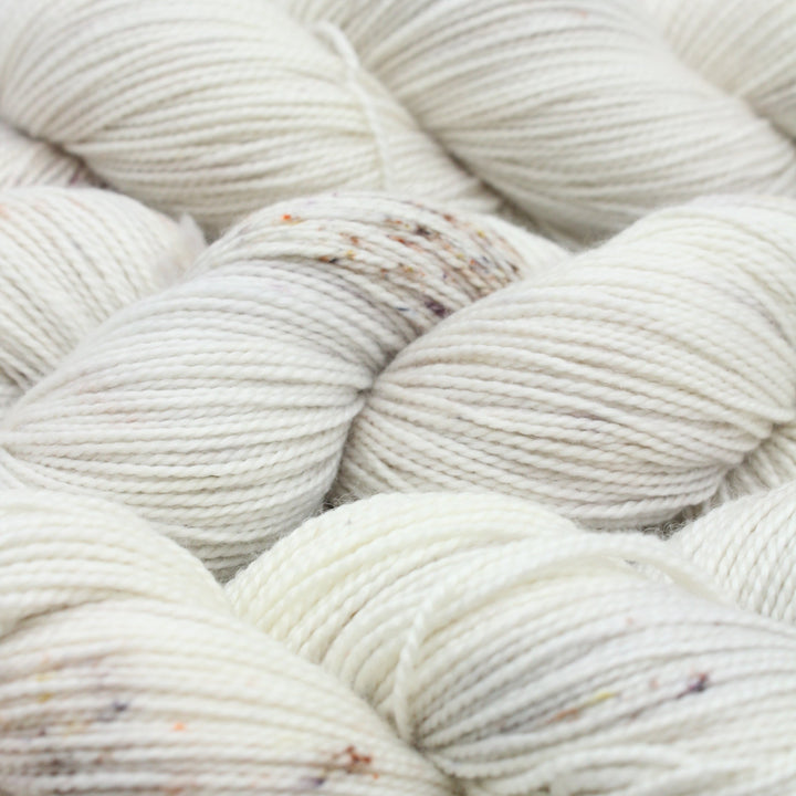 A gorgeous high twist silk merino blend with a pearly texture. The yarn is super soft and shiny. The fabric has a soft shine and a lovely drape. It is perfect for accessories and garments. The high twist construction means high stitch definition and shows off colour wonderfully. With a tight gauge and the strength of silk, this yarn could also be considered for socks.
