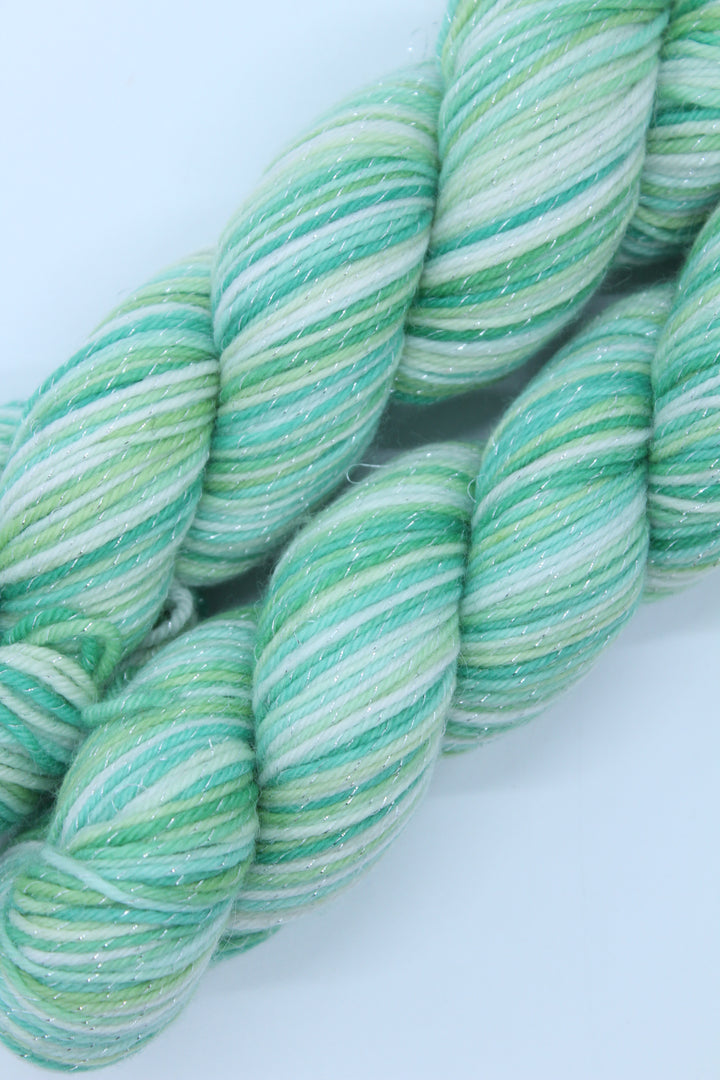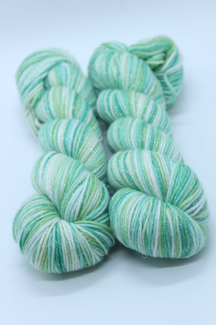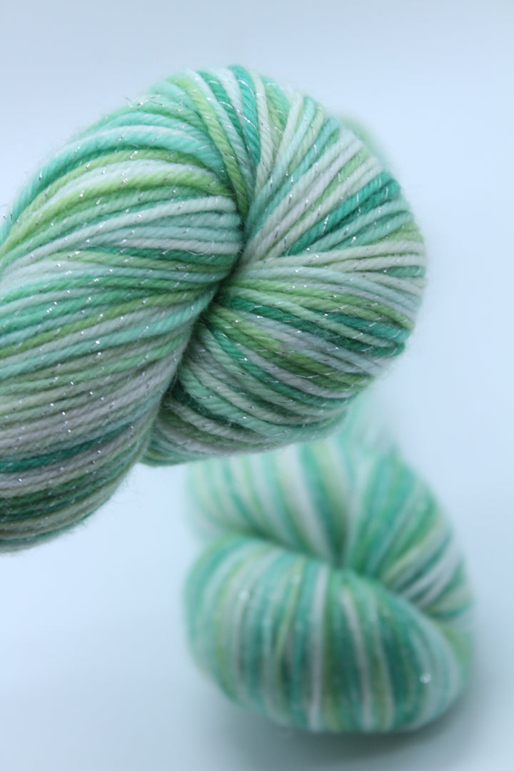 60% SW Merino, 26% Nylon, 10% Alpaca, 4% Metalica, 8ply, 100g