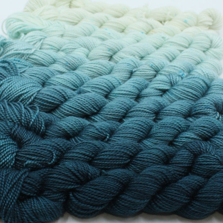 Each Skein: 80% Merino, 20% Silk, 20g, 73m