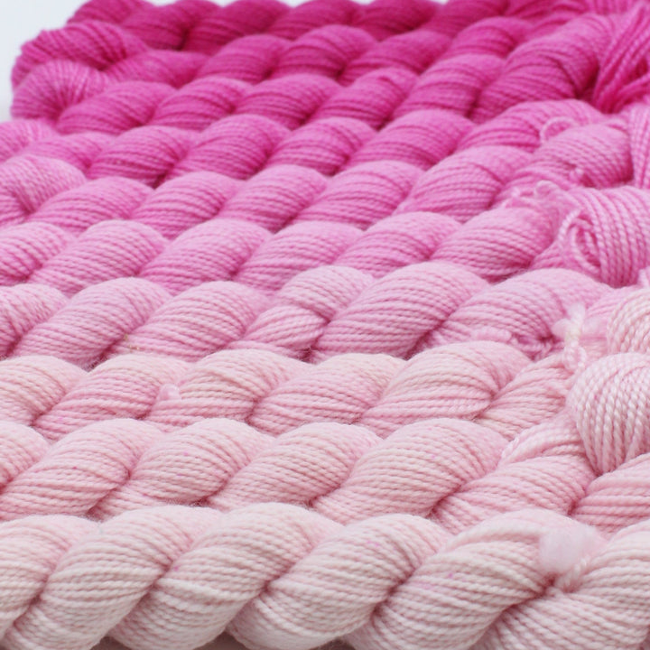 Each Skein: 80% Merino, 20% Silk, 20g, 73m