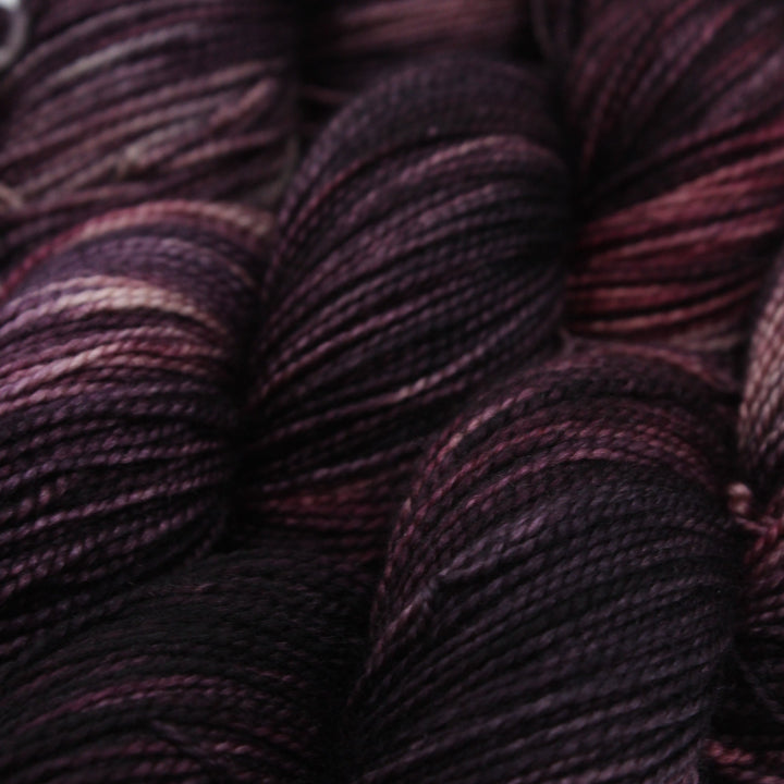 A gorgeous high twist silk merino blend with a pearly texture. The yarn is super soft and shiny. The fabric has a soft shine and a lovely drape. It is perfect for accessories and garments. The high twist construction means high stitch definition and shows off colour wonderfully. With a tight gauge and the strength of silk, this yarn could also be considered for socks.