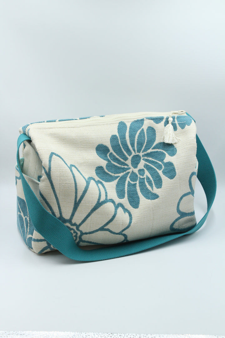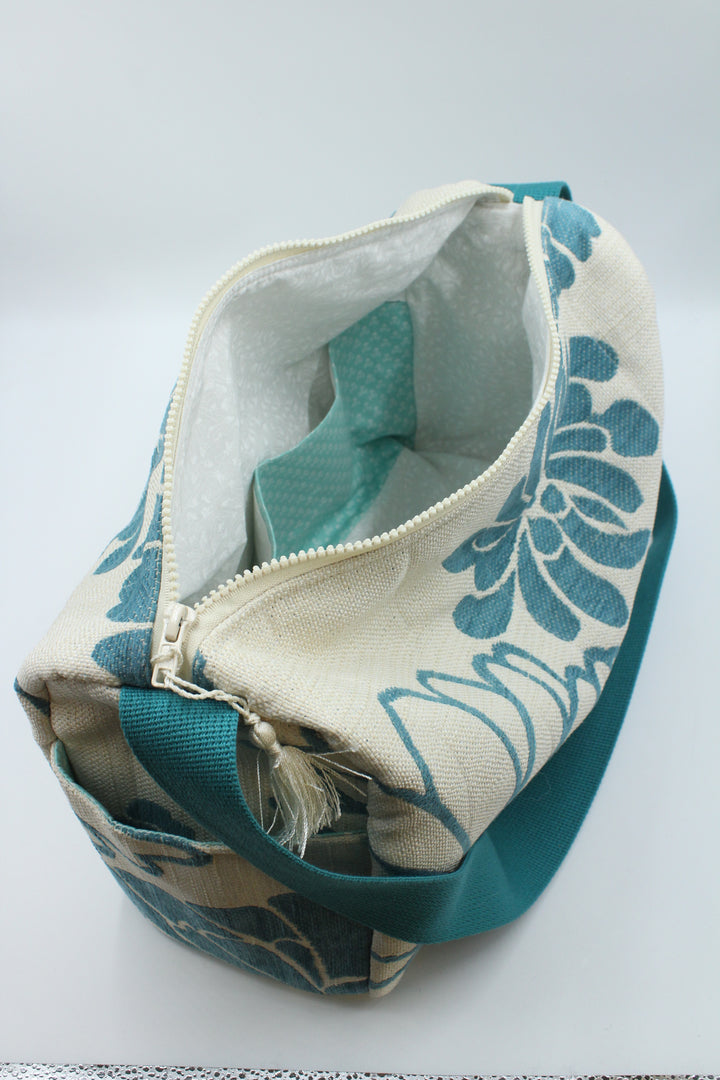 Quilted Knitting Bag - Blue Flowers