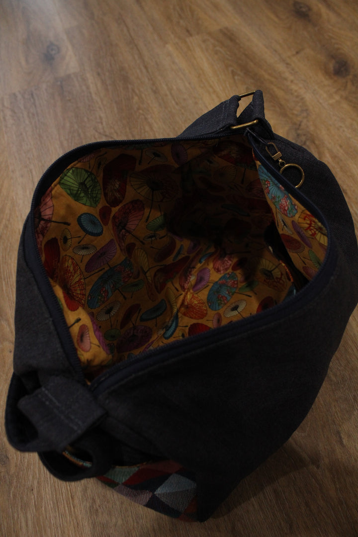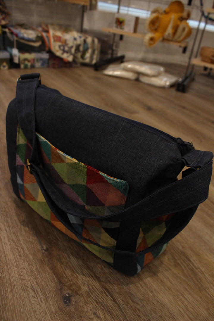 Handmade by Lorraine, this quilted knit bag is a surpurb way to organise your knit projects. It features internal dividers, side pockets and a firm quilted handle, and zipper. It has been designed to comfortably fit 2 of Lorraine's small project bags (japanese knot bags).