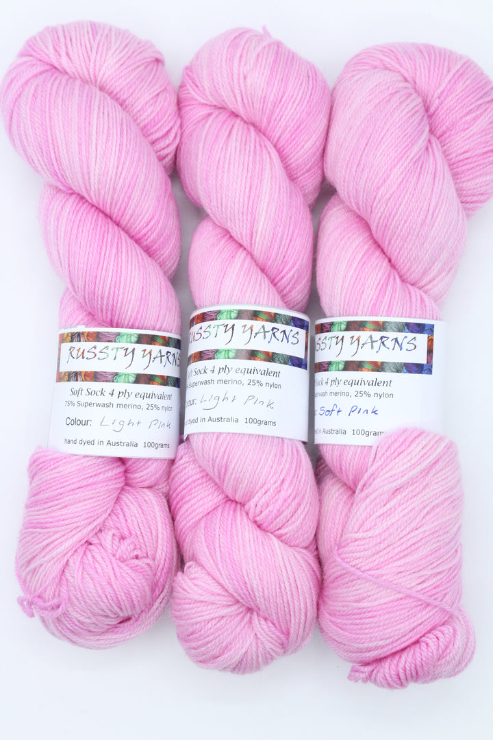 Snuggle yourself into something special with this hand-dyed Russty Soft Sock! This luxurious 4-ply fingering weight yarn is composed of a super soft blend of 75% Merino wool and 25% Nylon. Pamper yourself with the best of the best from down under!